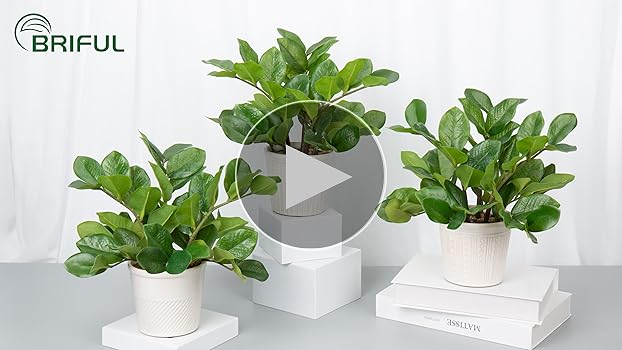 Amazon Com Briful Fake Plants 12 Artificial Zz Plants In Ceramic Pot Faux Zamioculcas Potted Silk Plants For Home Living Room Office Desk Decor Bedroom Aesthetic Home Kitchen